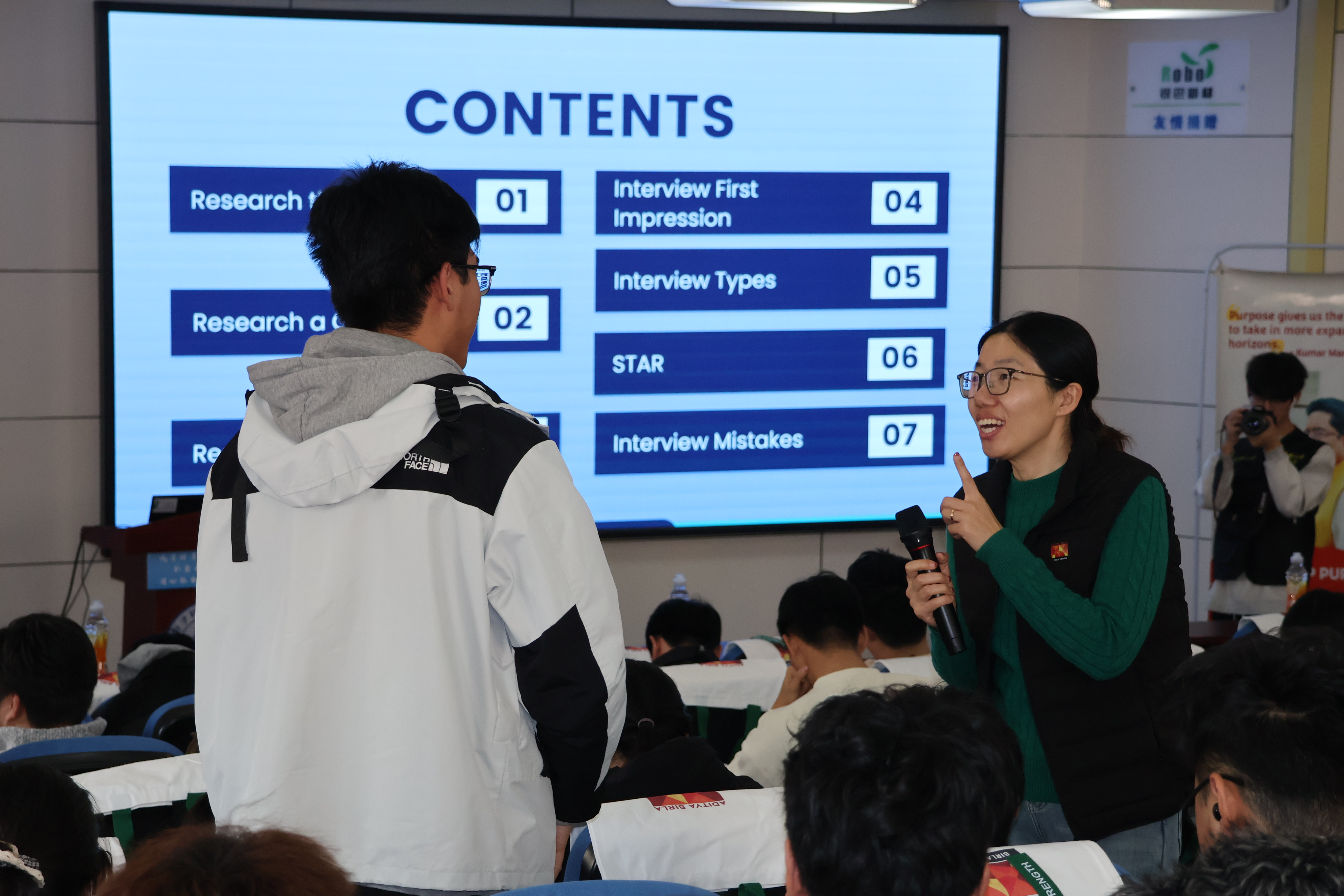 培训伊始,耿静静系统剖析了职场必备的核心能力,包括抗压应变、领导力、创意思维与技术素养,并建议同学们主动关注行业动态,科学规划职业路径,以更精准地把握就业趋势,锚定个人发展方向。在简历制作环节,她结合实例分享了实用要点:优质简历应结构清晰、突出岗位相关技能、以量化成果体现实践成效,并围绕企业需求进行内容定制,避免千篇一律,从而通过细节充分展现个人竞争力。围绕面试准备,详细梳理了自我介绍、职业规划等常见问题的应答策略,重点讲解了STAR法则在实际场景中的运用,并分享了缓解紧张、增强自信的有效技巧。系统的面试指导弥补了同学们在实战应对中的知识短板,切实提升了求职应变能力。