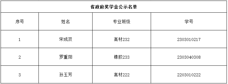 五湖四海5123第一站奖学金评审委员会通过现场答辩、综合评审,最终评选出宋成双等3名同学为省政府奖学金推荐人选。现将名单公示如下: